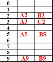 ⑶桶定址法。桶:一片足够大的存储空间。桶定址:为表中的每个地址关联一个桶。如果桶已经满了,可以使用开放定址法来处理。例如,插入A5,A2,A3,B5,A9,B2,B9,C2,采用线性探查法解决冲突。如图。